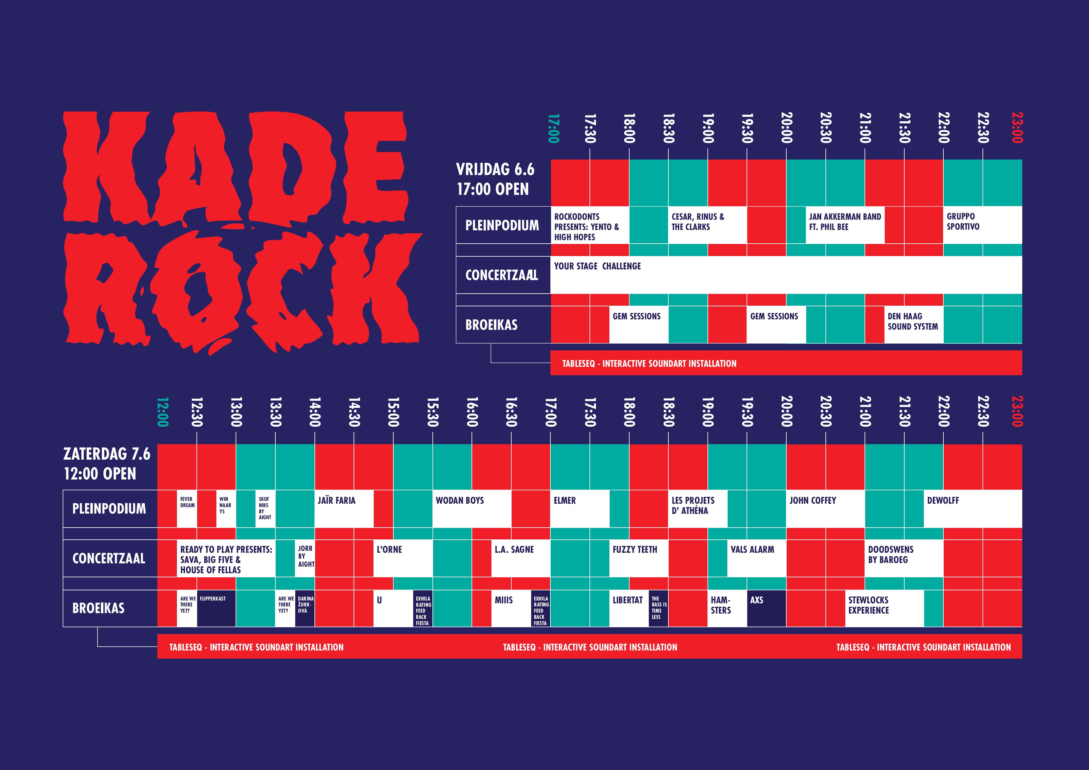 2-Day TicketsKaderock, het popfestival rond het beroemde Muziekcentrum Musicon in Den Haag, bestaat sinds 1996. De straten rond het festivalterrein zijn de bakermat van de beroemde Haagse beatcultuur, heilige grond. De carrières van bijna alle bekende Haagse pop- en urbanartiesten van de laatste decennia zijn er begonnen. Deze jaarlijkse samenkomst van popgeneraties behoort tot het immaterieel erfgoed van Nederland en biedt een unieke kans om kennis te maken met verleden, heden en toekomst van popstad nummer 1.